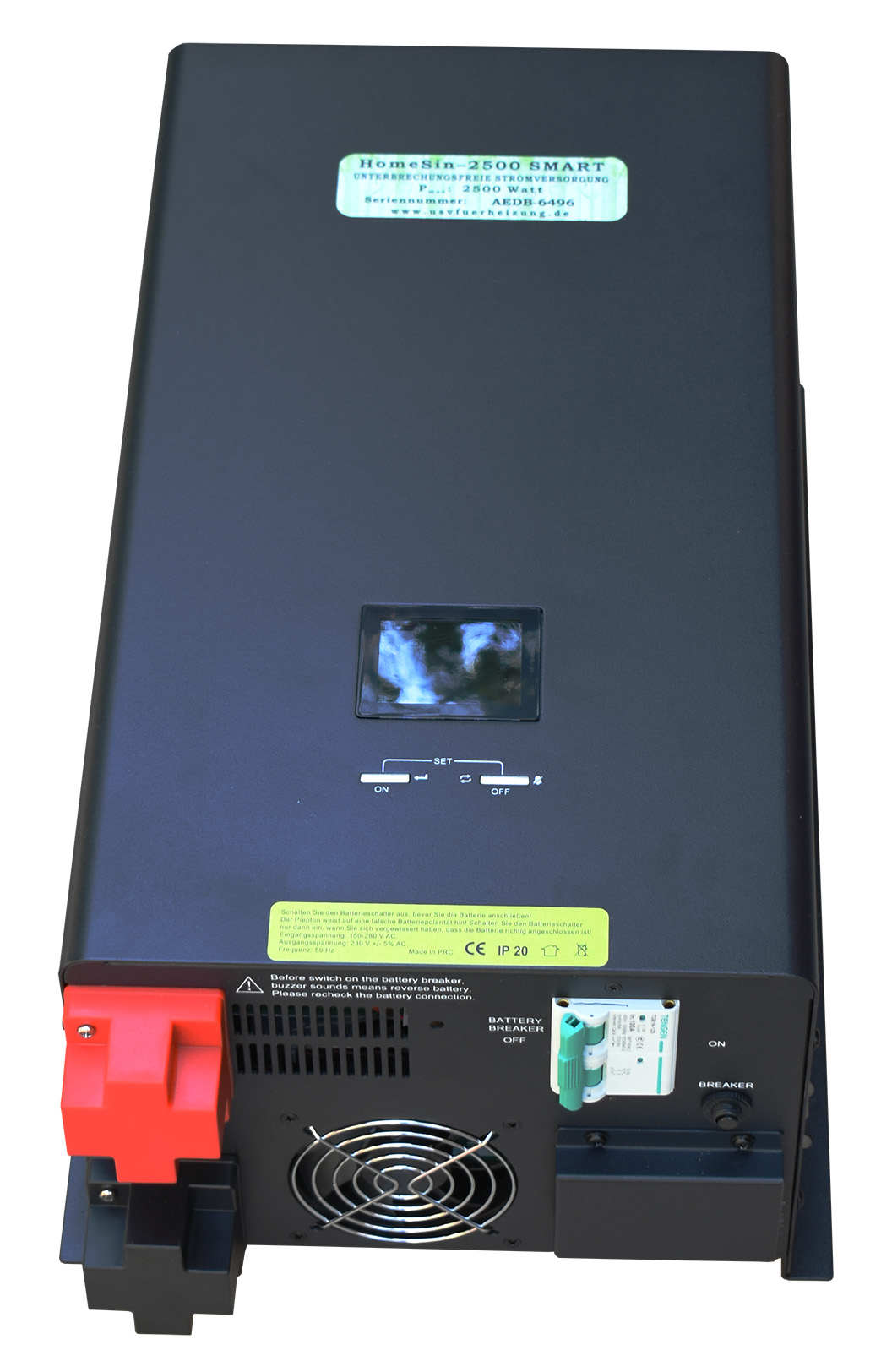 Die HomeSin 2500 USV ist ein fix installierbares Gerät. Die HomeSin 2500 Smart USV soll von einem Elektriker installiert werden. Die USV ist für die Wandmontage vorgesehen, kann aber auch waagerecht auf einem geeigneten Ständer aufgestellt werden.